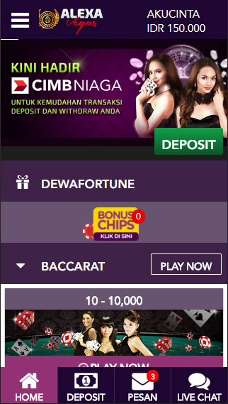 1. Masuk ke menu Browser Mobile anda dan Kunjungi www.alexavegas.com setelah itu klik menu MOBILE lalu klik button Download Now, dan tunggu proses download selesai.